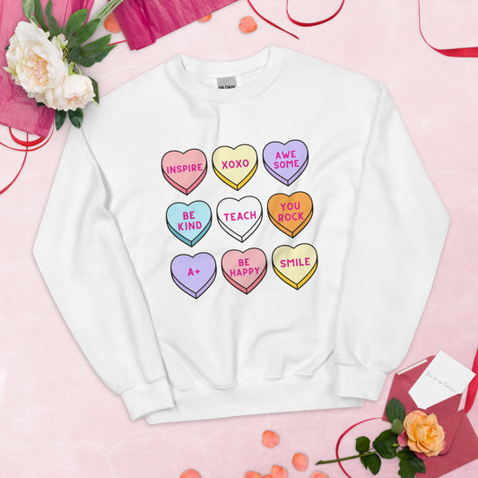 Conversation Hearts Teacher Sweatshirt, Retro Valentines Shirt, Valentines Day Shirt, Teacher Gifts, Gift for Her
