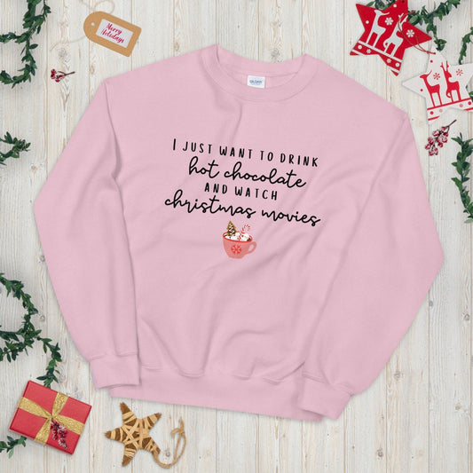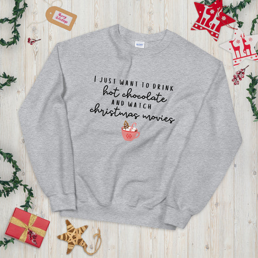 I just want to drink hot chocolate and watch christmas movies Unisex Sweatshirt, christmas shirt, punny shirt, holiday shirt