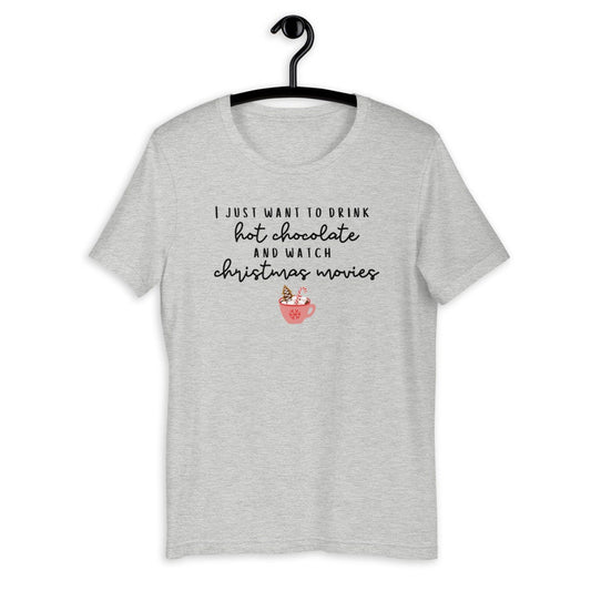 I just want to drink hot chocolate and watch christmas movies Short-Sleeve Unisex T-Shirt, christmas shirt, punny shirt, holiday shirt