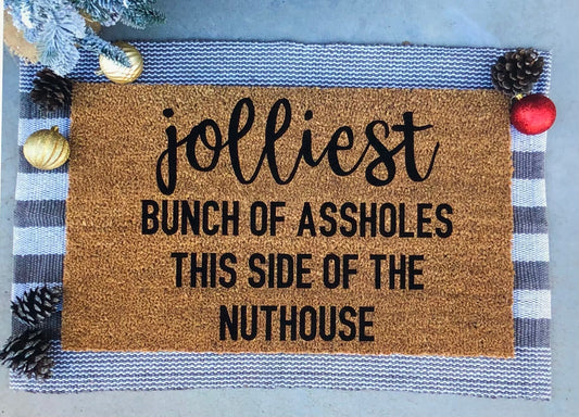 Jolliest bunch of assholes this side of the nuthouse doormat, funny doormat, Christmas vacation, Christmas doormat