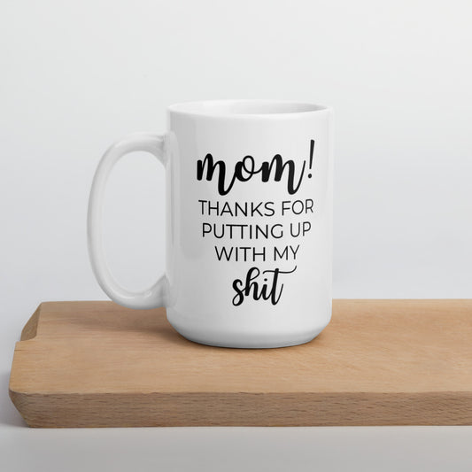 Mom thanks for putting up with my shit coffee mug, cute mug, funny mug, mothers day gift