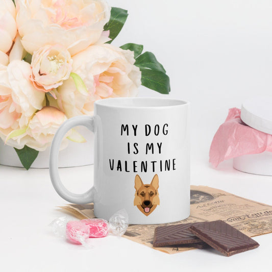 My dog is my valentine German shepherd Mug, valentines day, galentines, dog mom, dog dad, dog mug