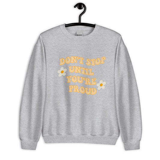 Don't stop until you're proud Unisex Sweatshirt, retro font, womens day, womens month, womens quote, cute sweatshirt