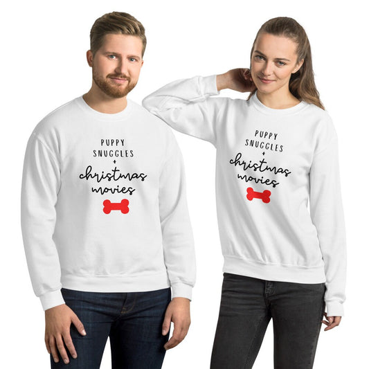 Puppy snuggles and christmas movies Unisex Sweatshirt, christmas shirt, punny shirt, holiday shirt