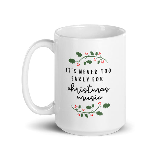 Never too early for christmas music mug, cute mug, festive mug, christmas mug, punny mug, holiday mug