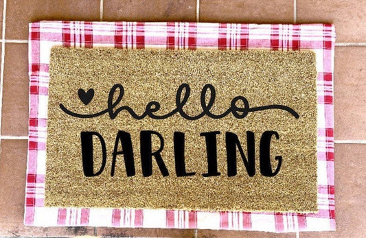 hello darling doormat with hearts, valentines day, cute doormat, valentines day mat, valentine, heart doormat, love doormat