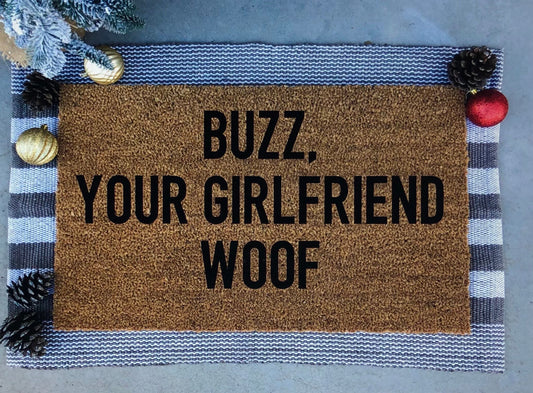 Buzz your girlfriend woof doormat, Christmas doormat, funny doormat, home alone