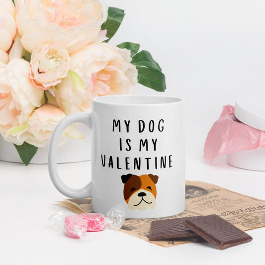 My dog is my valentine BULLDOG Mug, valentines day, galentines, dog mom, dog dad, dog mug