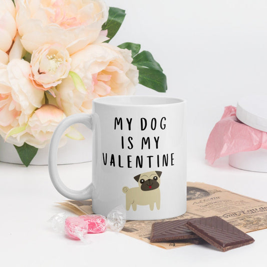 My dog is my valentine pug Mug, valentines day, galentines, dog mom, dog dad, dog mug