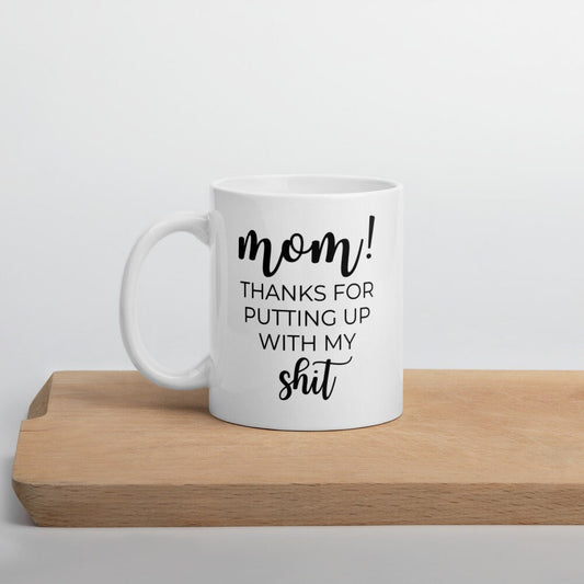 Mom thanks for putting up with my shit coffee mug, cute mug, funny mug, mothers day gift