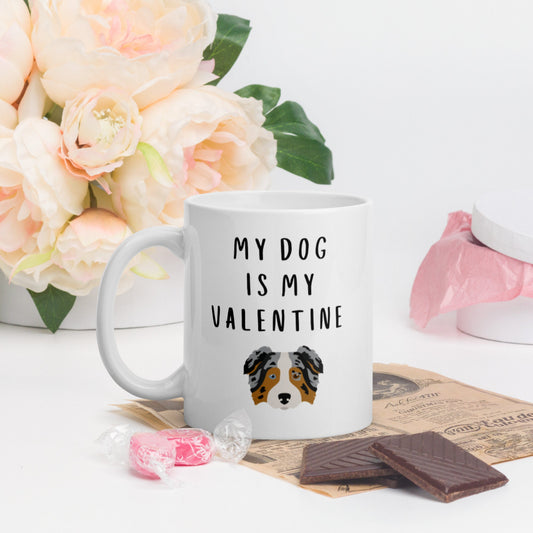 My dog is my valentine Aussie, Australian Shepherd Mug, valentines day, galentines, dog mom, dog dad, dog mug