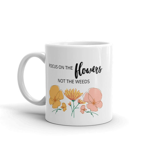 Focus on the flowers coffee mug, positive mug, gift for her, gift for friend, motivational mug, positivity mug