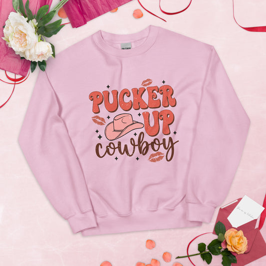 Pucker Up Cowboy Western Valentines Day Sweatshirt, Retro Valentines Shirt, Funny Shirt, Single Valentines, Country Shirt, Gift for Her