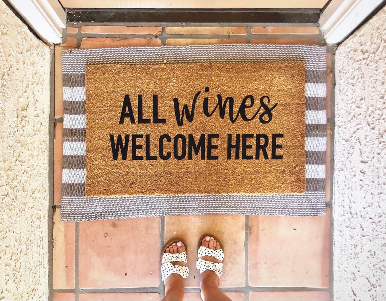 All wines welcome here doormat, funny doormat, wine doormat, housewarming gift