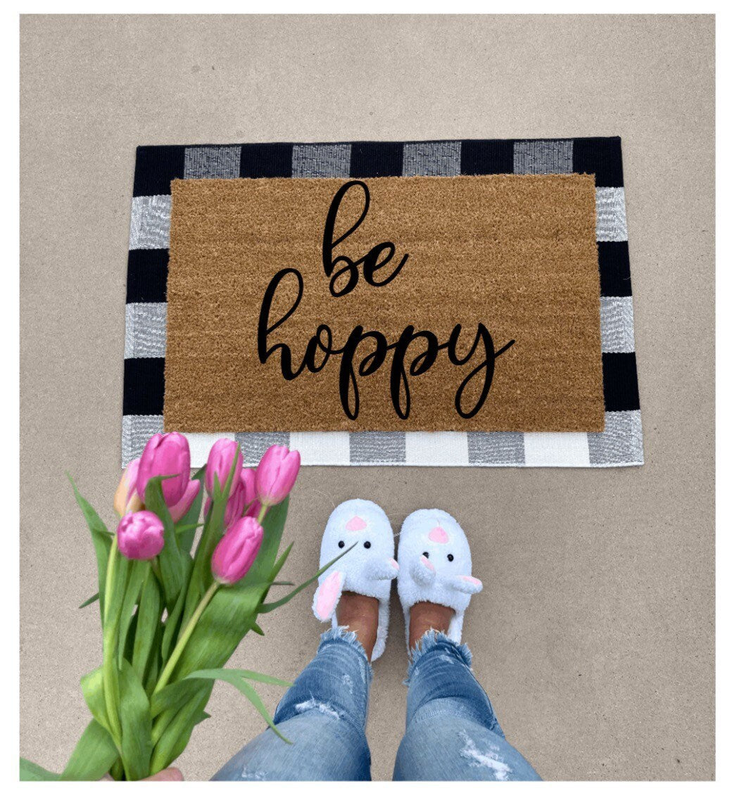 Be hoppy doormat, cute doormat, easter doormat, spring doormat, bunny doormat