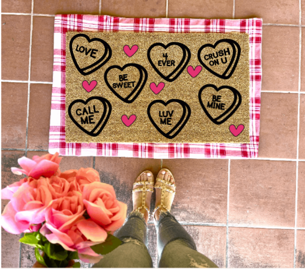 Conversation Hearts Doormat, valentines day, cute doormat, valentines day mat, valentine, heart doormat, love doormat