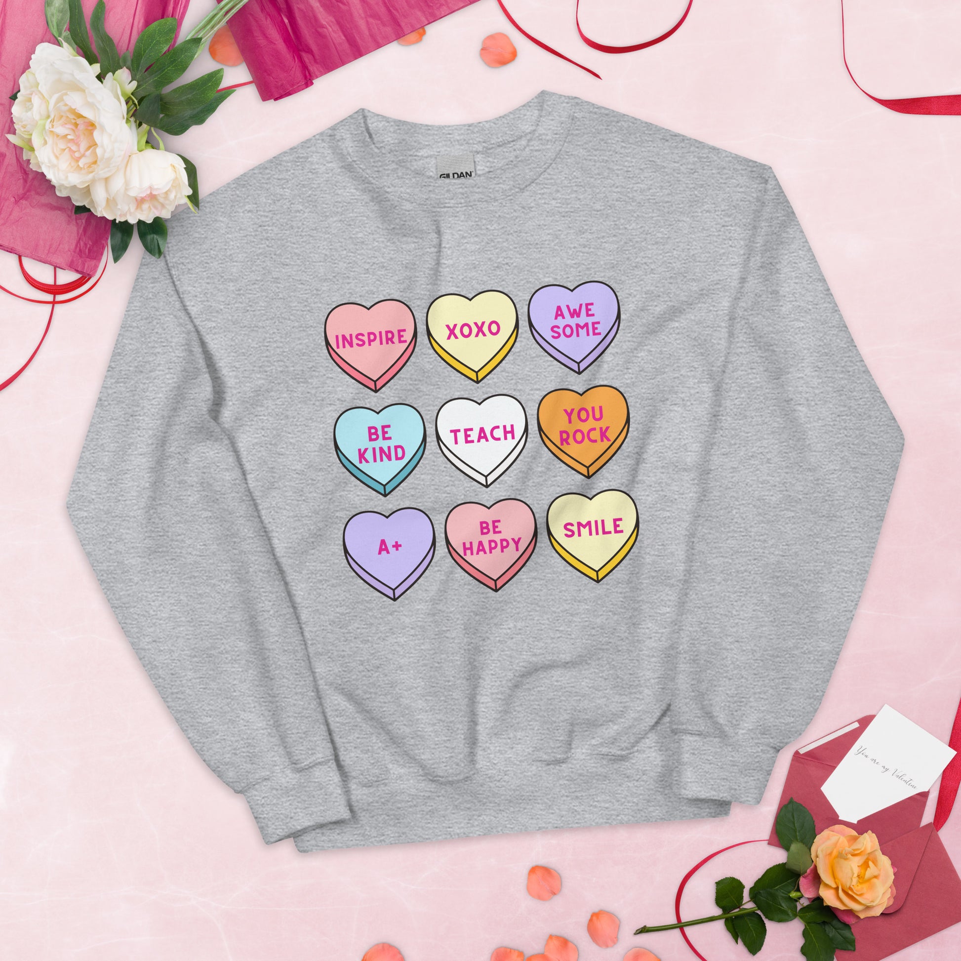 Conversation Hearts Teacher Sweatshirt, Retro Valentines Shirt, Valentines Day Shirt, Teacher Gifts, Gift for Her