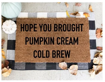 Hope You Brought Pumpkin Cream Cold Brew! The perfect doormat for fall and any pumpkin spice lover.