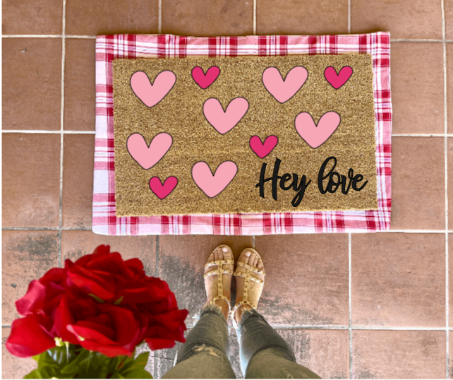 Hey Love Doormat, valentines day, cute doormat, valentines day mat, valentine, heart doormat, love doormat