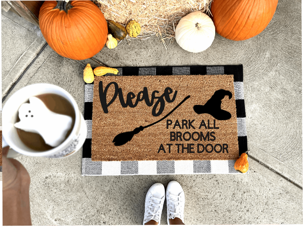 Please Park All Brooms At The Door Doormat, funny doormat, witch doormat, Halloween doormat, fall doormat