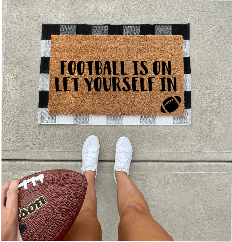 Football Is On Let Yourself In funny doormat, cute doormat, football season, Cleveland browns