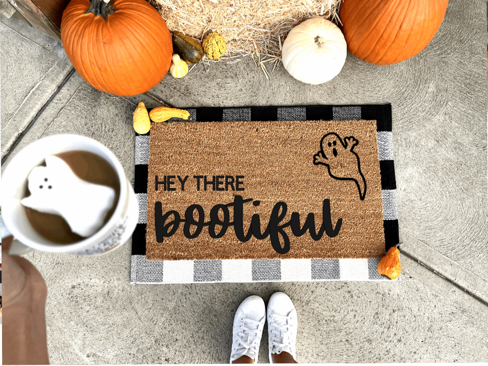 Hey there Bootiful doormat, funny doormat, witch doormat, Halloween doormat, fall doormat