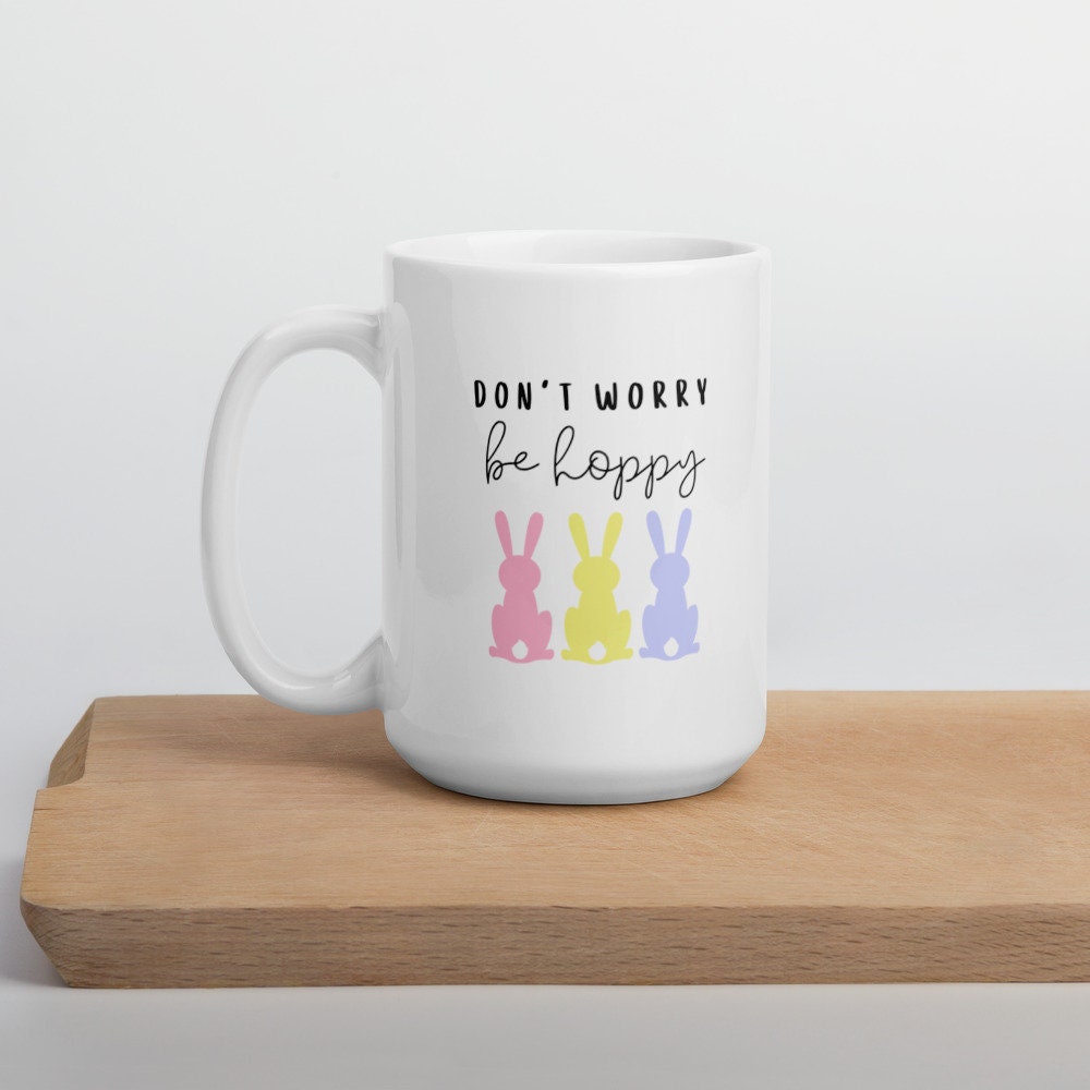 Don't worry be hoppy mug, easter mug, happy mug, spring mug, cute mug