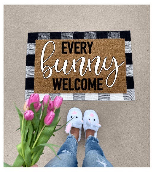 Every bunny welcome doormat, cute doormat, easter doormat, spring doormat, bunny doormat