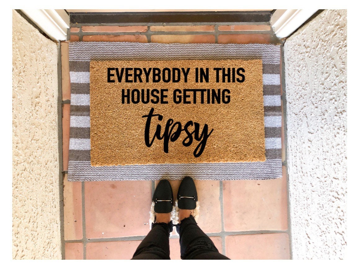 Everybody in this house getting tipsy doormat, cute doormat, funny doormat, celebrate, New Years