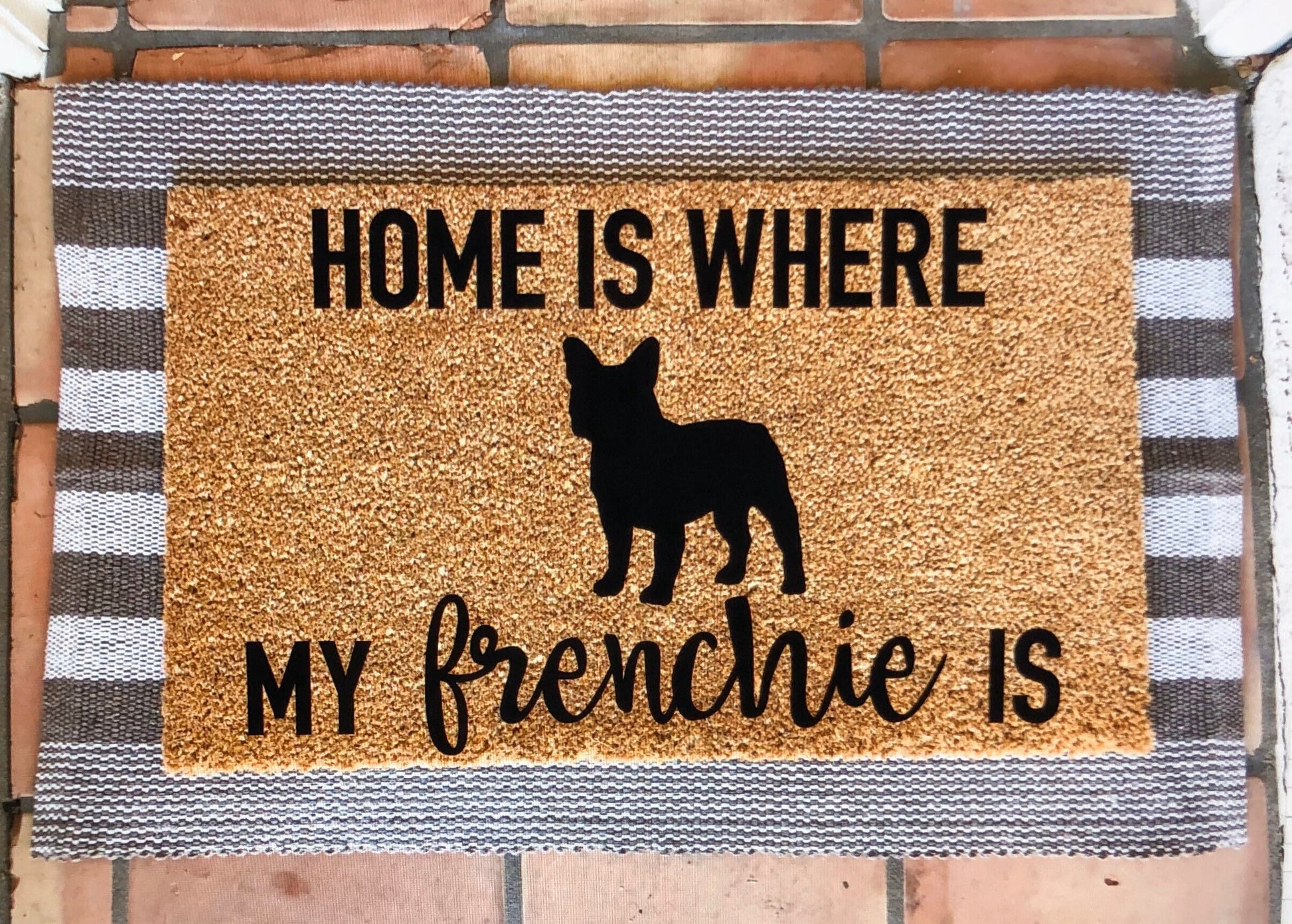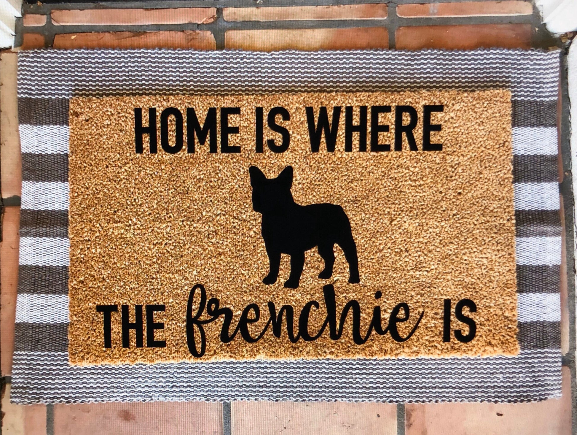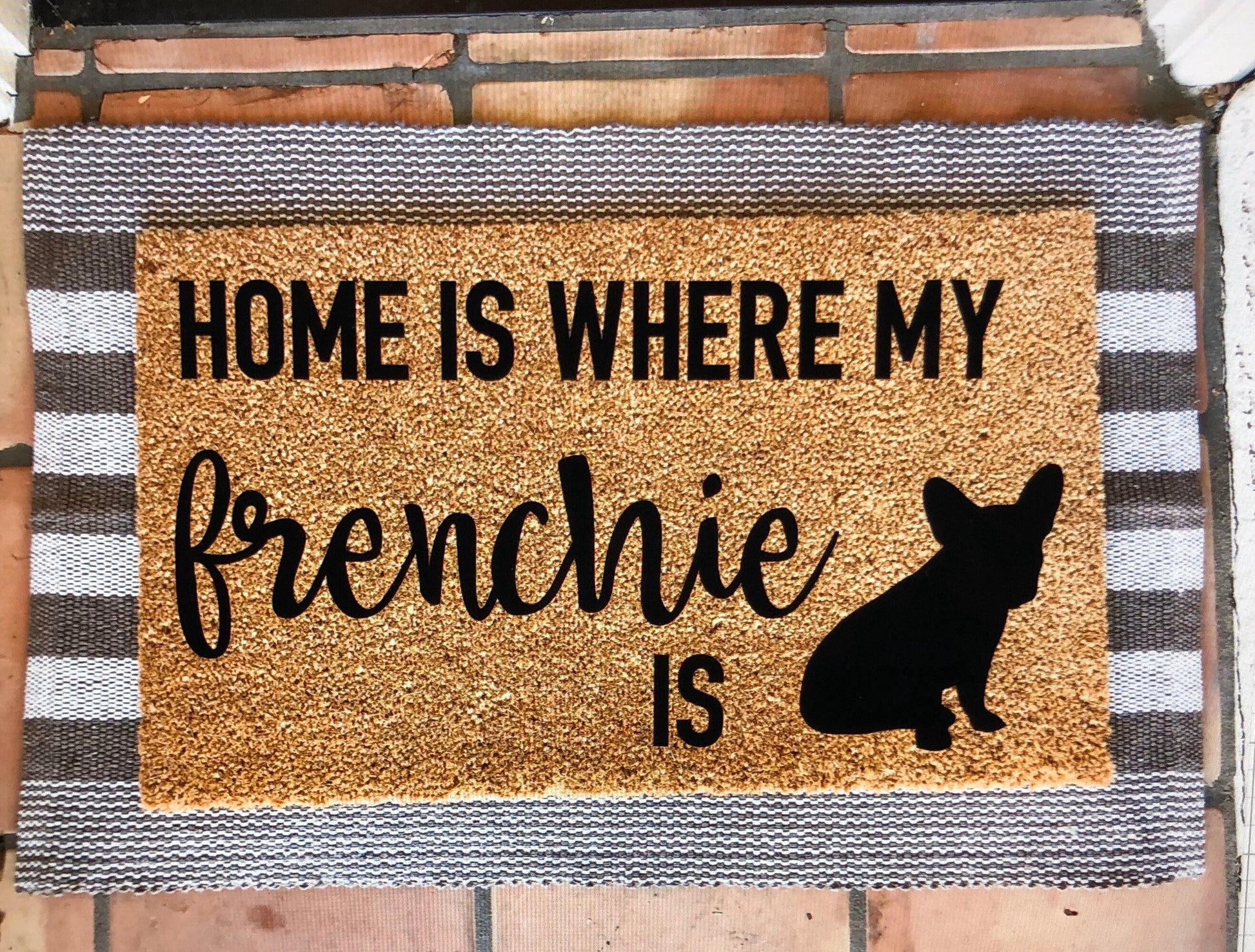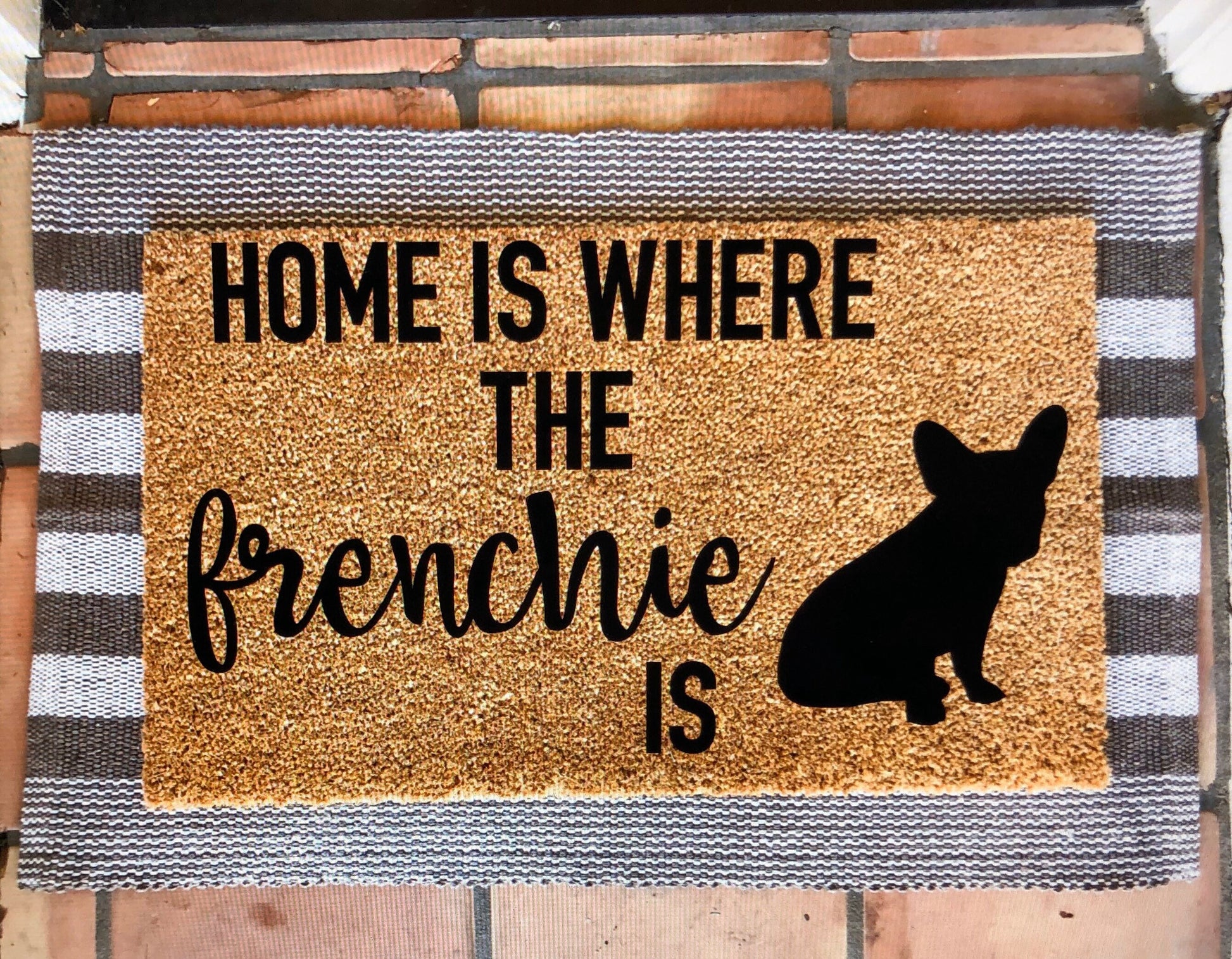 Home is where my/the frenchie is doormat, pet doormat, funny doormat, customizable doormat, cute doormat