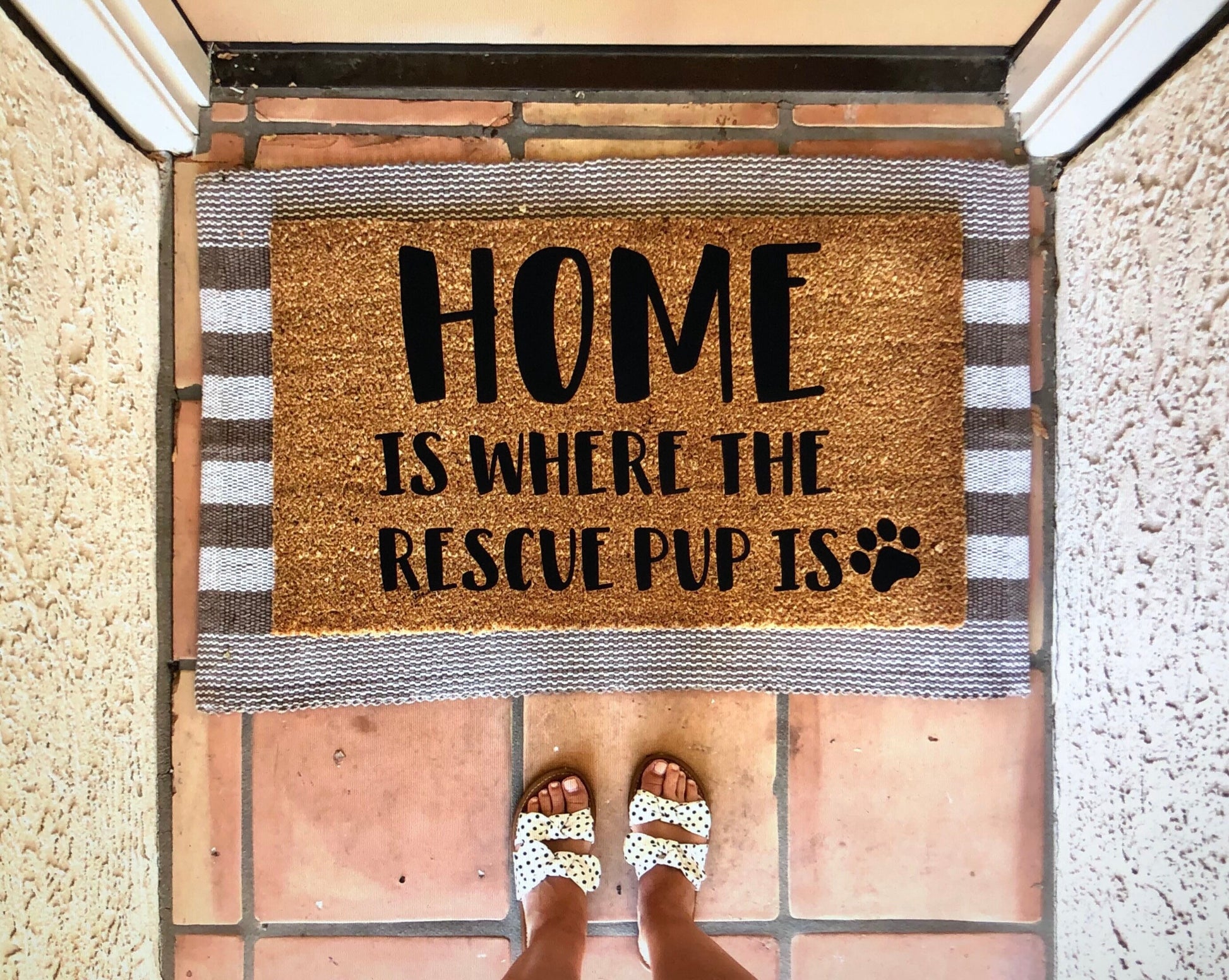 Home is where the rescue pup is doormat,cute doormat, pet doormat, dog doormat, rescue dog