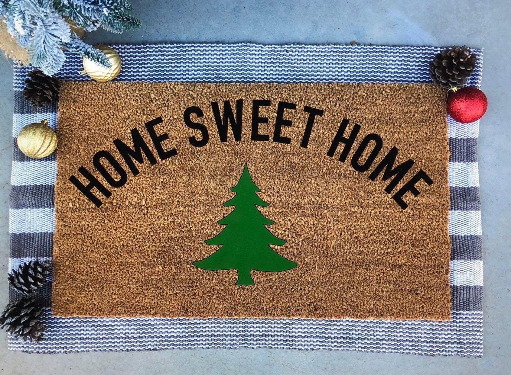 100% Coir with rubber backing. Hand painted with outdoor acrylic paint.