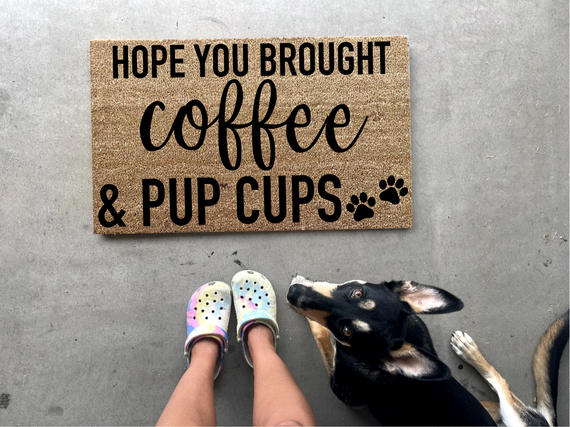Hope You Brought Coffee & Pup Cups doormat, funny doormat, pet doormat