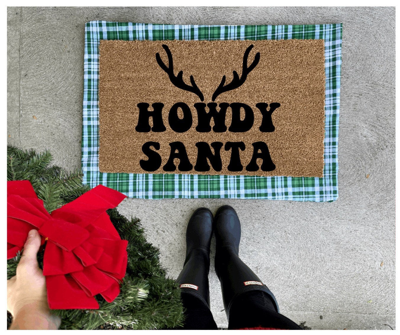 Howdy santa antler doormat, Christmas doormat, Christmas decor