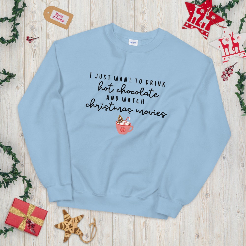 I just want to drink hot chocolate and watch christmas movies Unisex Sweatshirt, christmas shirt, punny shirt, holiday shirt