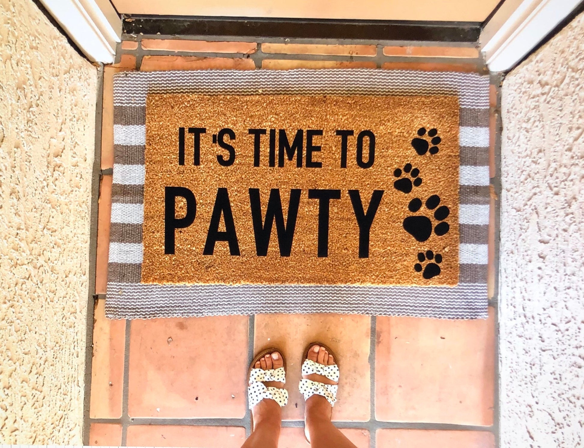 It’s time to pawty doormat, dog doormat, cute doormat, funny doormat