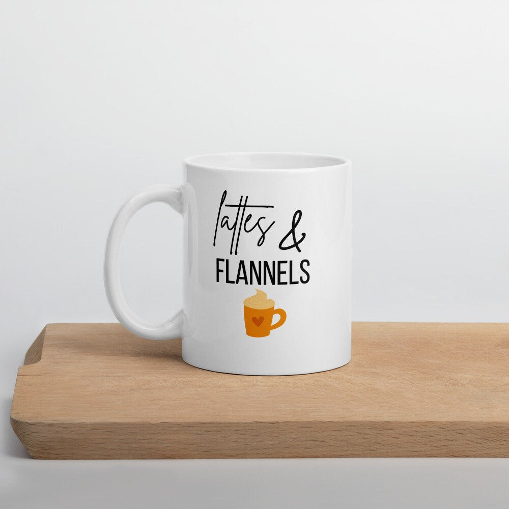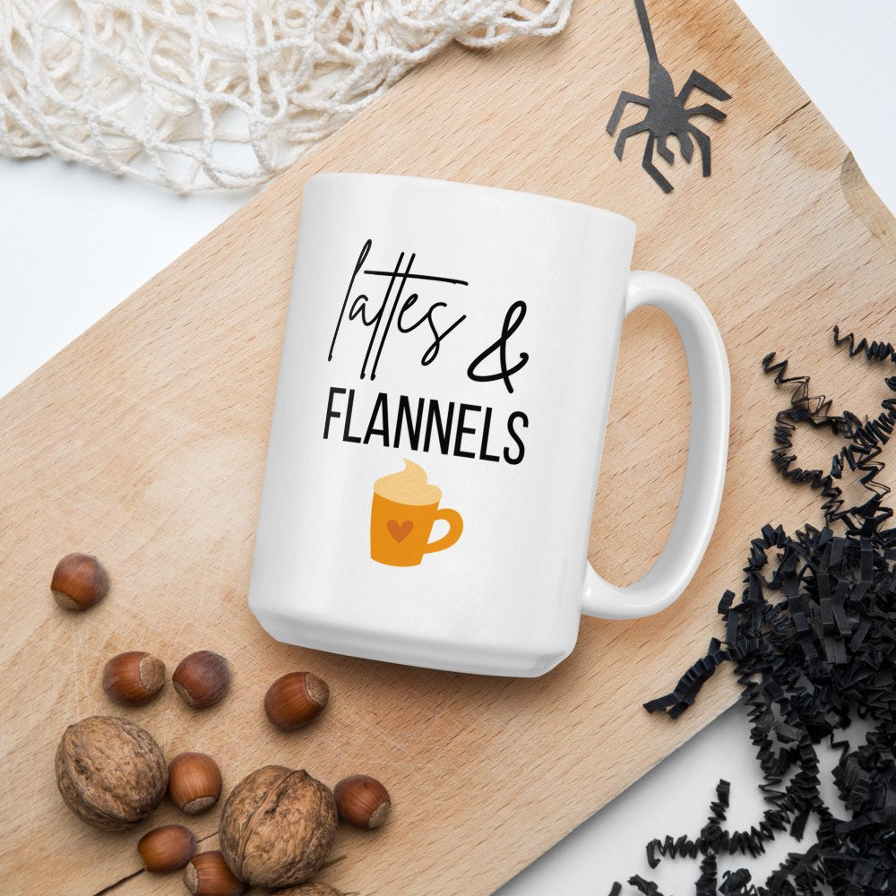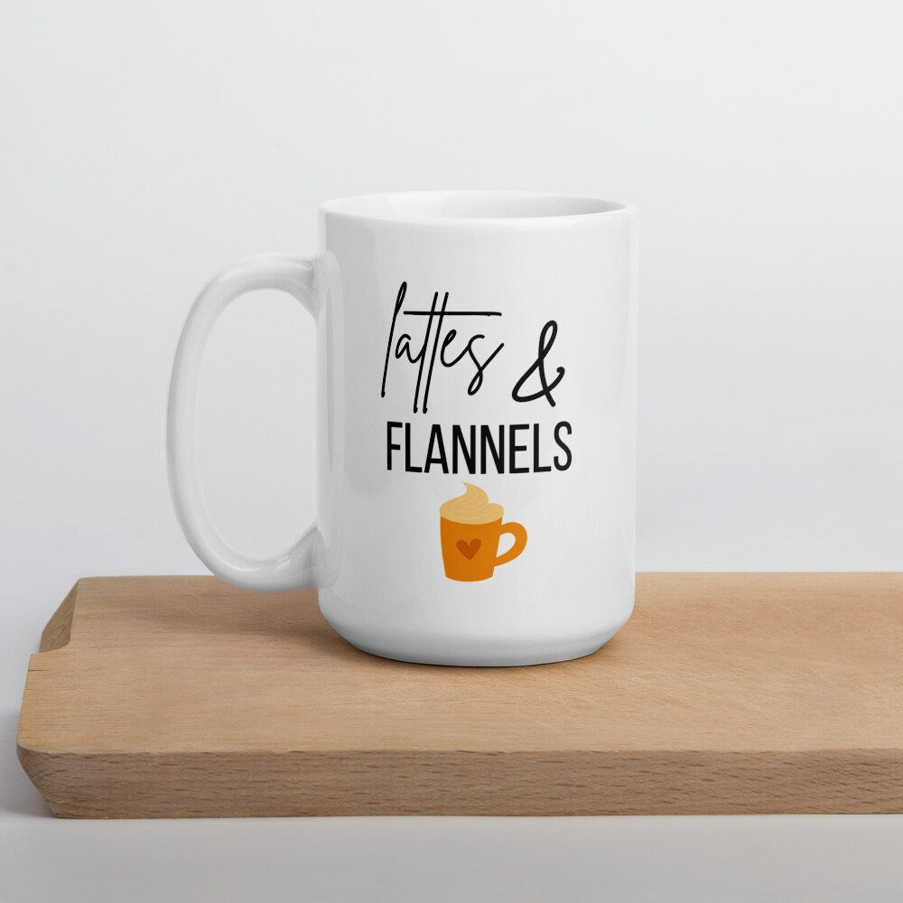 Lattes & flannels mug, fall coffee mug, pumpkin mug, psl, autumn mug, cute mug, funny mug, flannels mug, fall decor, pumpkin decor
