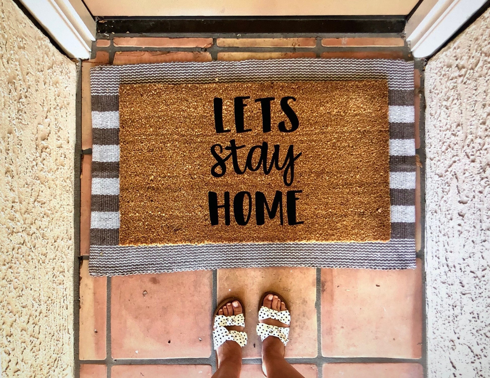 Let’s stay home doormat, cute doormat , housewarming gift, wedding gift