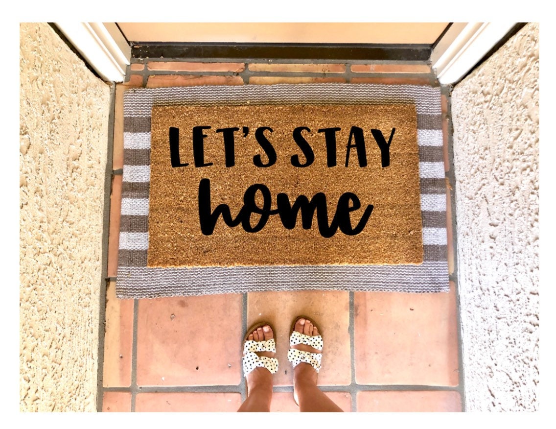 Lets stay home doormat, cute doormat, cozy doormat, love doormat, cozy af, homebody