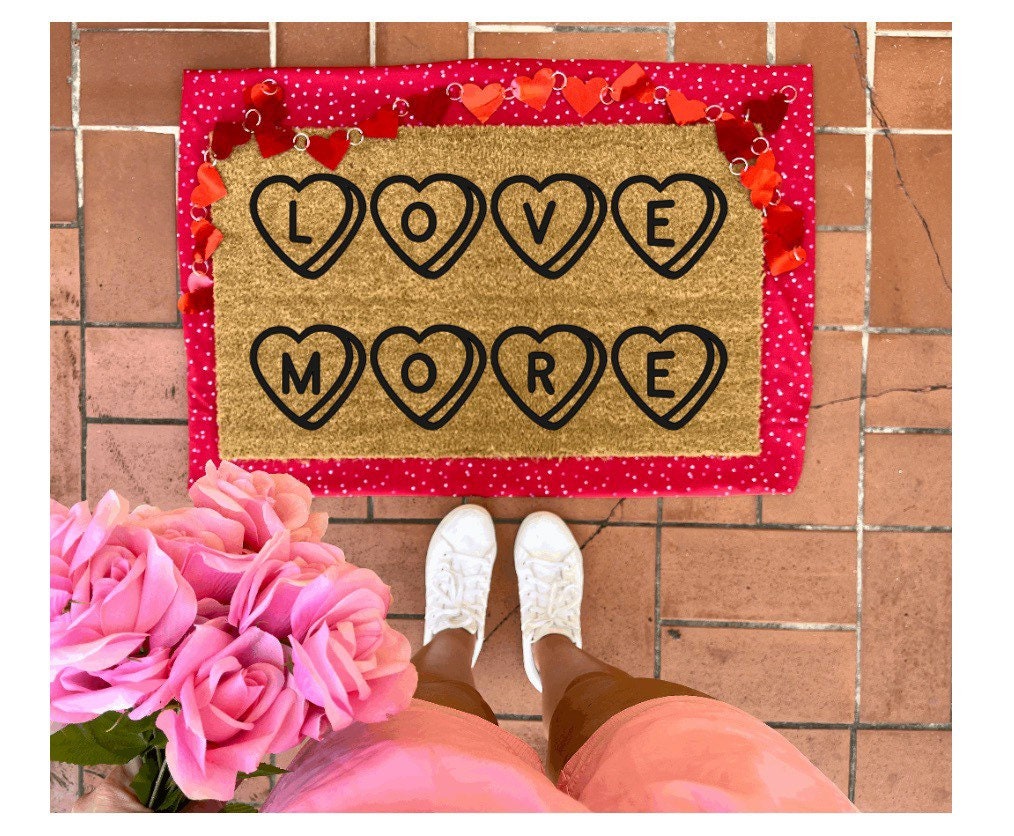 Love more doormat with conversation hearts, valentines day, cute doormat, valentines day mat, valentine, heart doormat, love doormat