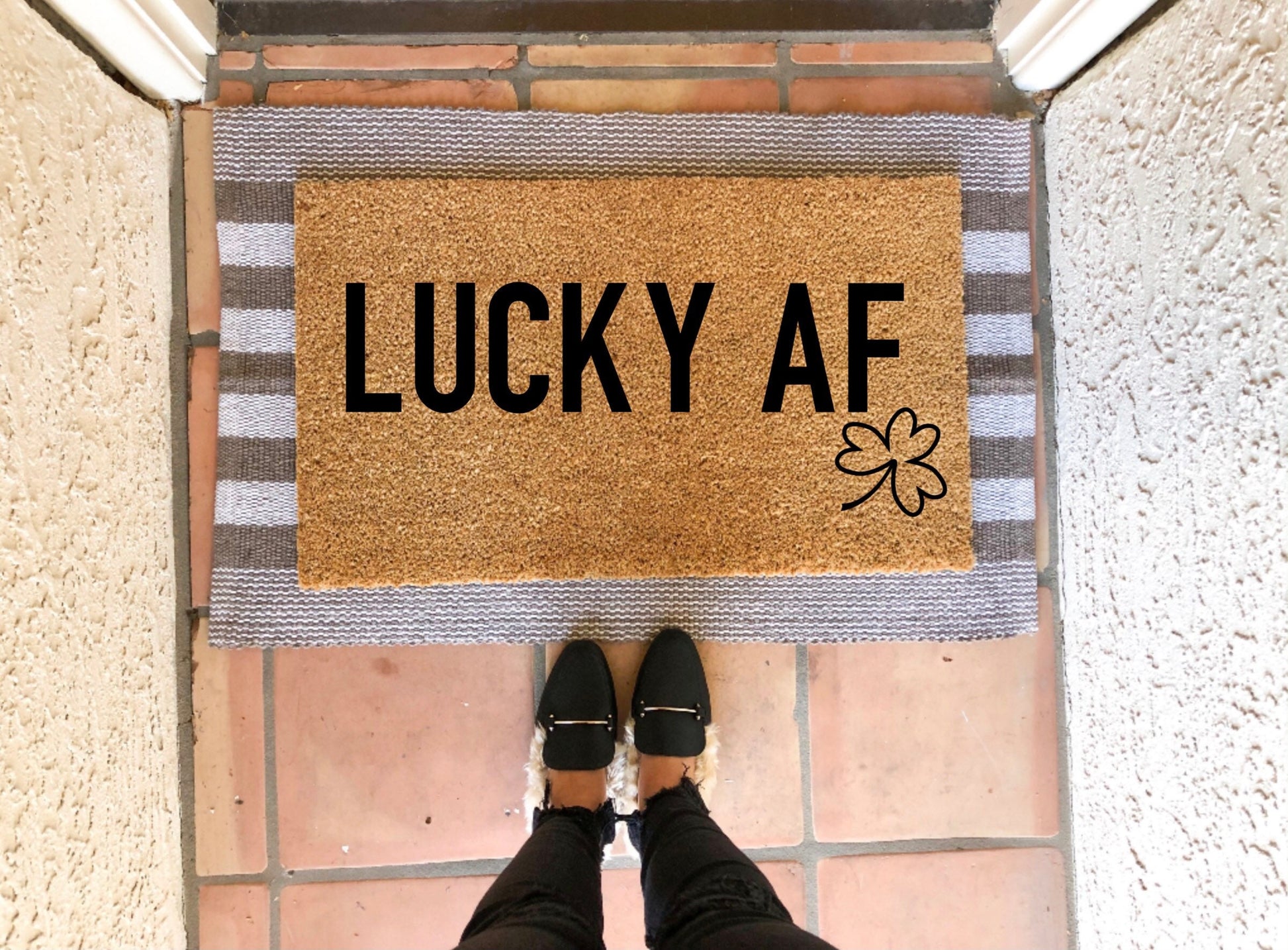 Lucky AF clover doormat, cute doormat, st patricks day doormat, spring doormat