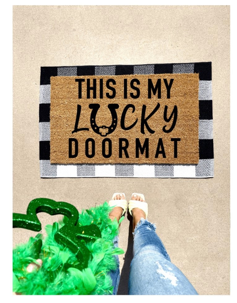 Lucky Doormat horseshoe doormat, cute doormat, st patricks day doormat, spring doormat