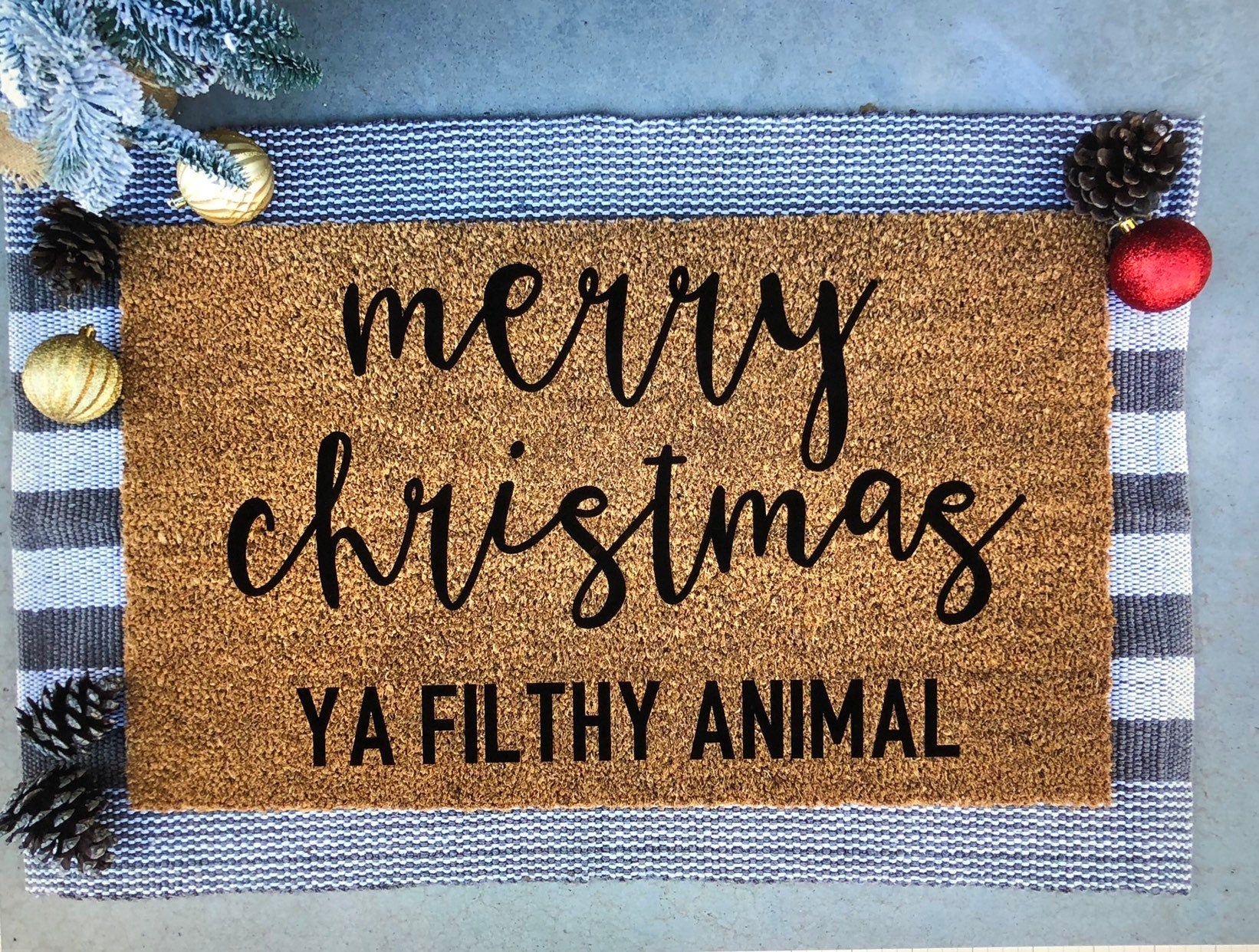 merry christmas ya filthy animal doormat, home alone doormat, Christmas doormat