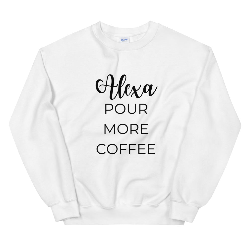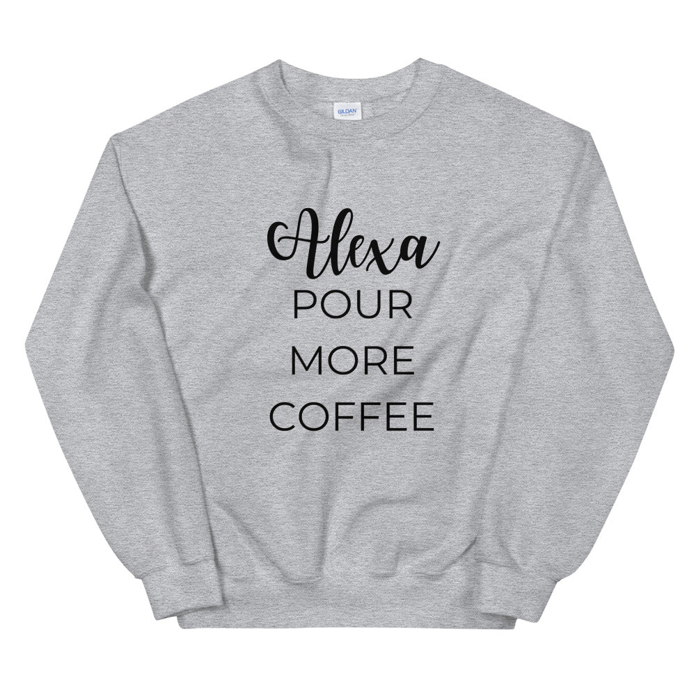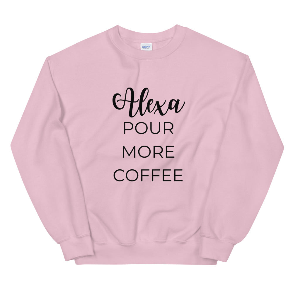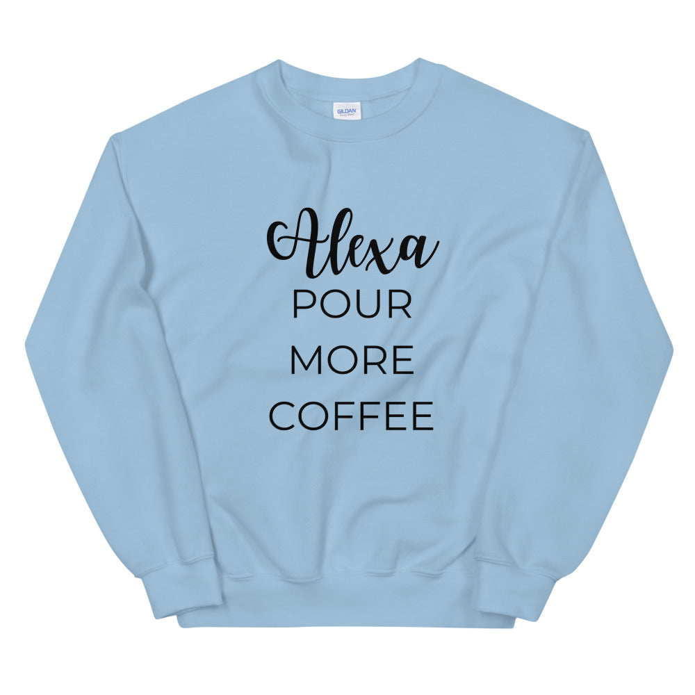 MULTIPLE COLORS AVAILABLE - Alexa pour more coffee Unisex Sweatshirt, cute shirt, funny shirt, mom shirt, mothers day gift, gif for her