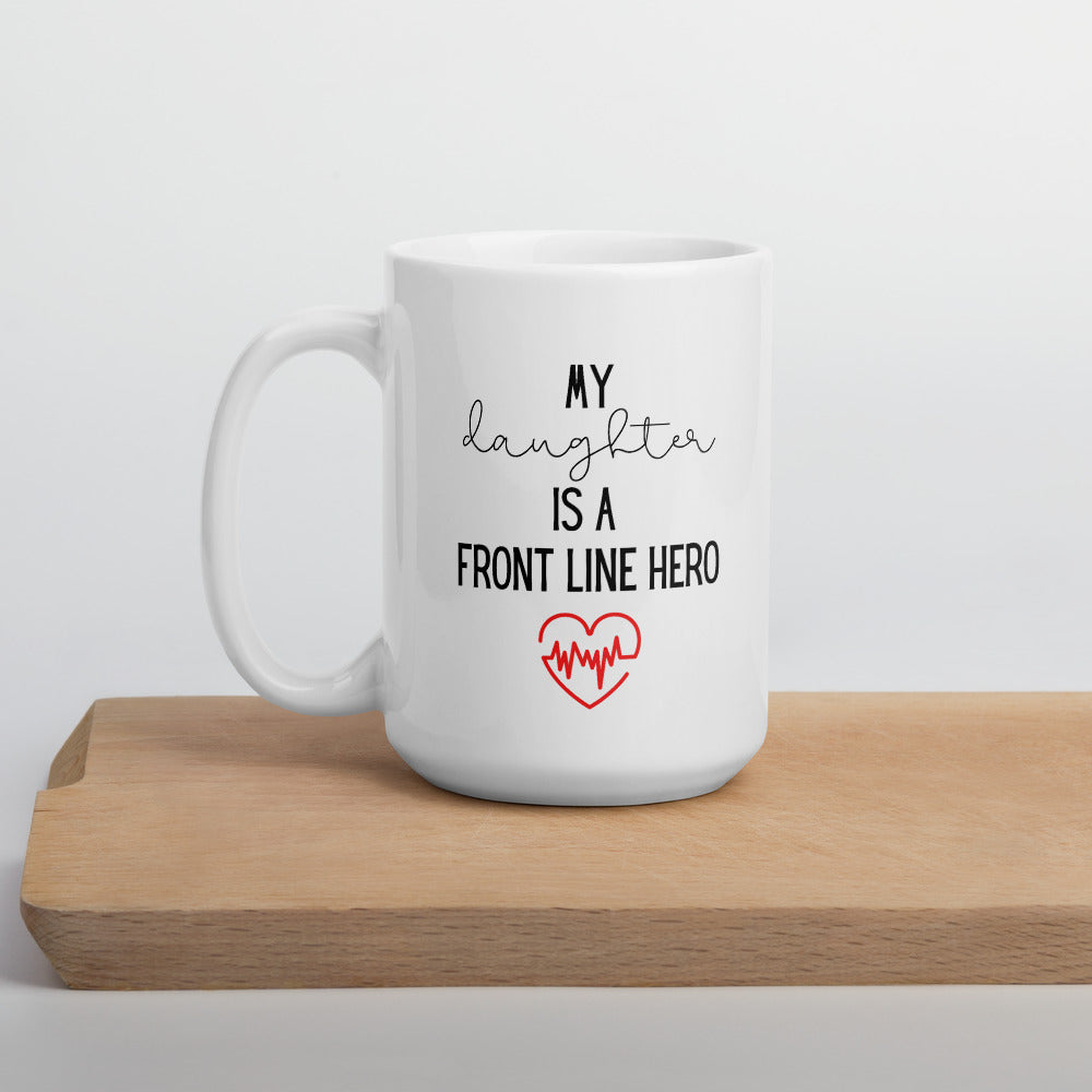my daughter heartbeat mug, hero mug, healthcare mug, nurse mug, essential mug, doctor mug, front line mug