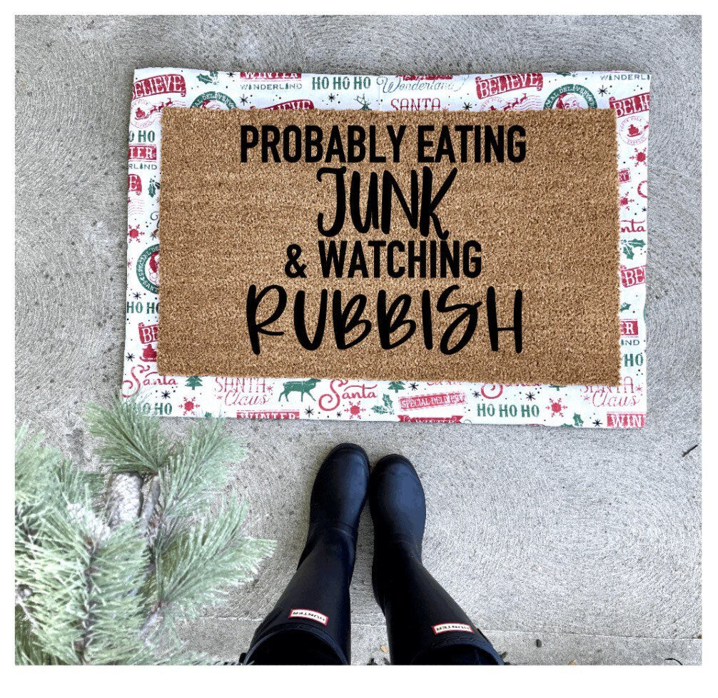 Probably eating junk and watching rubbish doormat, home alone doormat, Christmas doormat