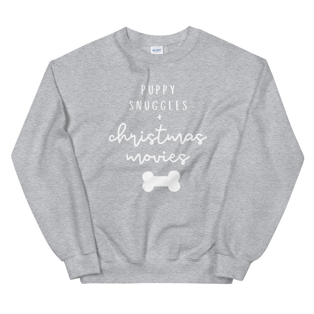 Puppy snuggles and christmas movies Unisex Sweatshirt, christmas shirt, punny shirt, holiday shirt