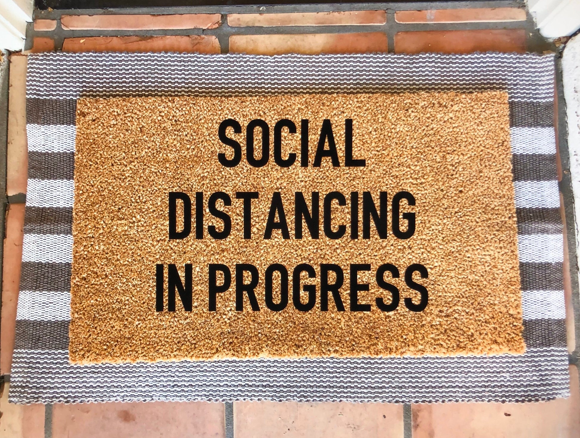 Social distancing in progress doormat, funny doormat, cute doormat, welcome mat, home decor, go away doormat
