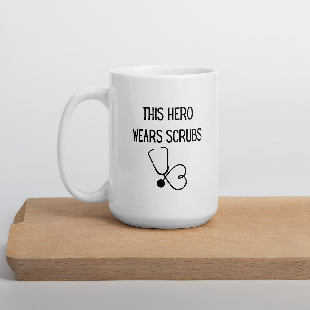 This hero wears scrubs mug, healthcare mug, nurse mug, essential mug, doctor mug, front line mug