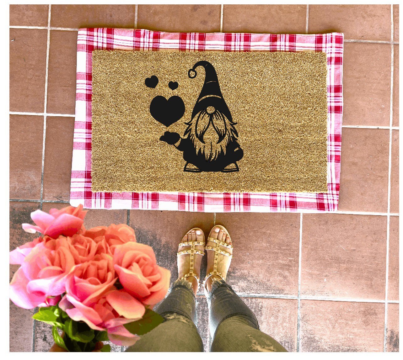 Valentine gnome doormat with conversation hearts, valentines day, cute doormat, valentines day mat, valentine, heart doormat, love doormat
